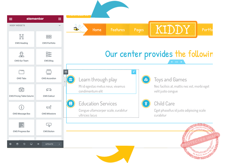 “Kiddy” comes with a very powerful Theme Options panel. With its help you will easily manage any part of your webiste: header, footer, page layouts, widget areas and much more.Â